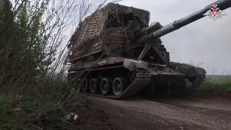 🇷🇺 152-mm self-propelled howitzer 2S19 Msta-S “Kosandra” with a camp hut of the “Vostok” group of troops in the South Donetsk direction. View Source