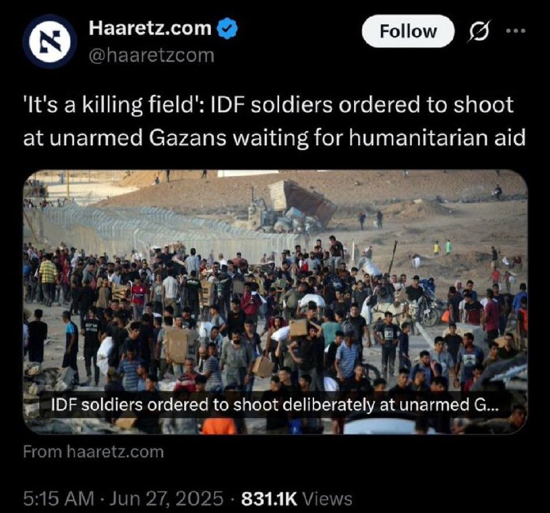 report has found that Israeli soldiers in Gaza were ordered to fire on unarmed Palestinians near food distribution sites, describing the areas as a “killing field” with “no enemy, no weapons.”