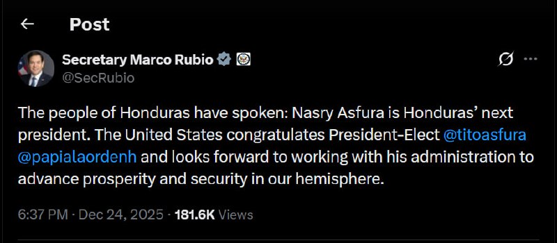 🇭🇳🗳📝 — After weeks of Delays and threats of “Red Terror”, the National Electoral Council has declared Trump-backed Nasry Asfura, a Palestinian Christian, as the president-elect of Honduras View Source