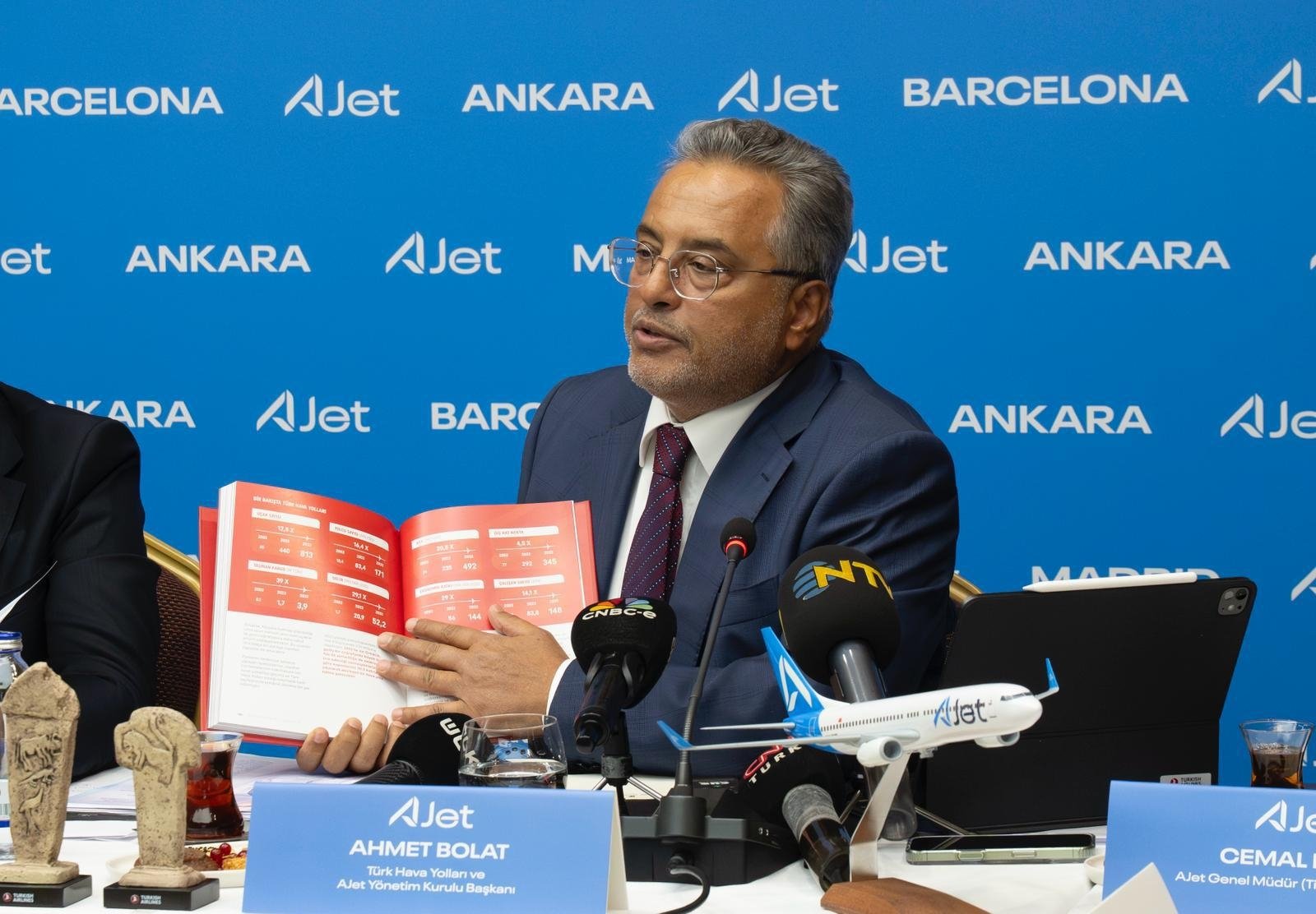 Türkiye’s low-cost airline AJet, a subsidiary of flag carrier Turkish Airlines (THY), is launching flights from the Turkish capital, Ankara, to Spain’s Madrid and Barcelona, the chairperson of the board of Turkish Airlines, Ahmet Bolat, said on Wednesday.
