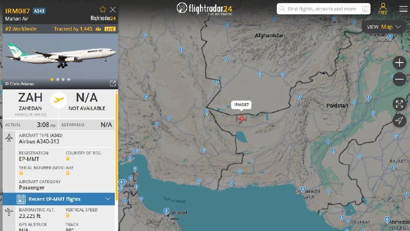 📸🇮🇷🇵🇰 – An Iranian Mahan airlines plane just entered Pakistani airspace.
