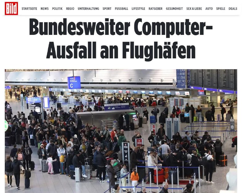 🇩🇪At airports across Germany, the Federal Police’s computer systems used to control entry have failed, Bild reports.
