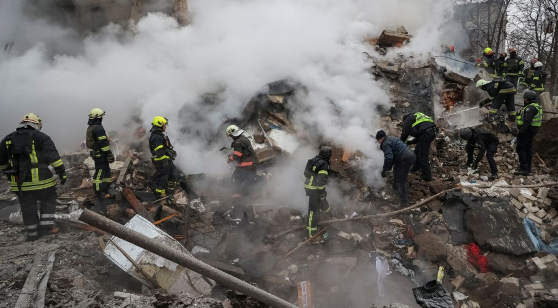 Ukrainian President Volodymyr Zelenskyy promises strong response as rescuers scour rubble for survivors in sub-zero temperatures.