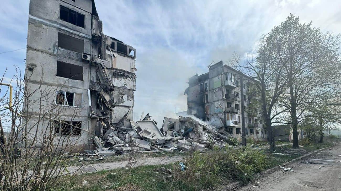 The apartment building in Ocheretyne damaged in the Russian attack. Photo: Donetsk Oblast Prosecutor’s Office