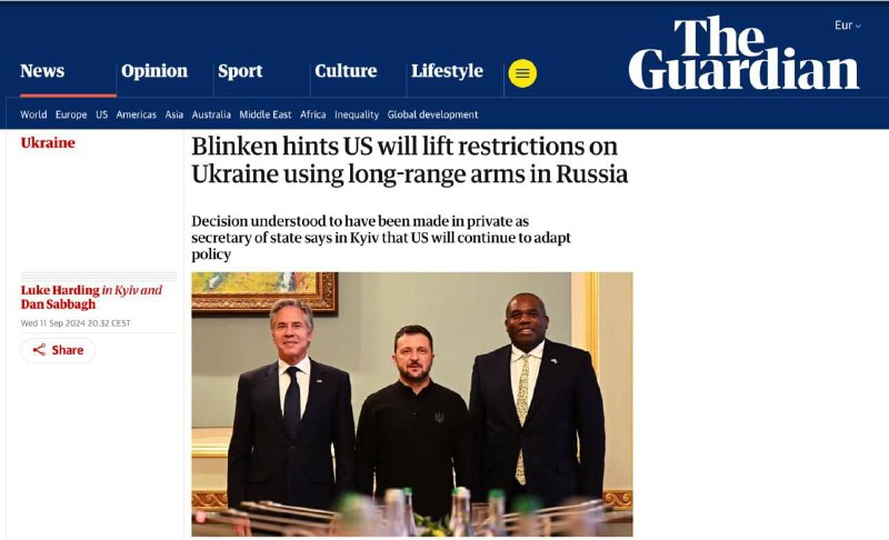 🇬🇧🇺🇦🇷🇺Britain has allowed Storm Shadow missile strikes on Russia, The Guardian reports, citing sources View Source