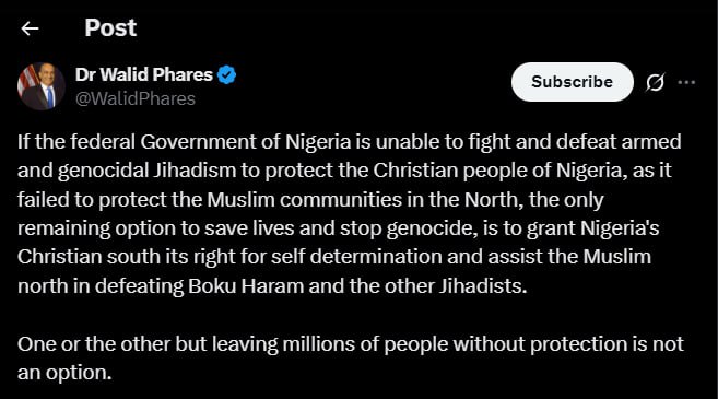 🇺🇸❌🇳🇬 Trump threatens to halt aid to Nigeria and invade it if it doesn’t begin tackling the rampant islamic terror attacks on Christians in the country. @CIG_telegram View Source