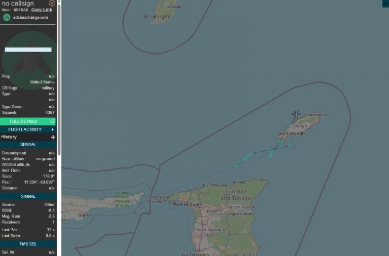 🇺🇸🇹🇹🗺 — An unidentified aircraft, believed by ADS-B data to be a U.S. military plane has briefly appeared and disappeared from radar coverage near Tobago. 🔗 Faytuks Network (@FaytuksNetwork) View Source