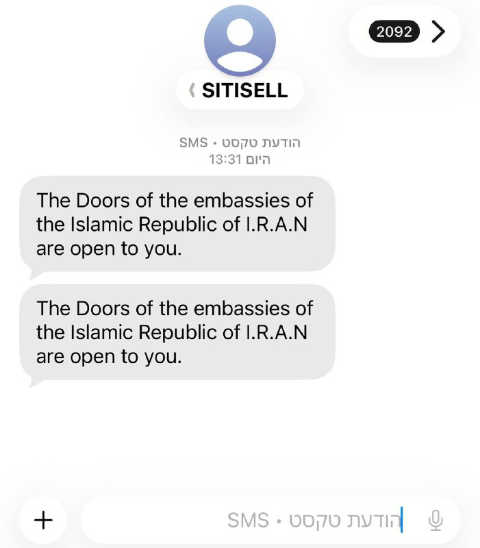 HAPPENING NOW: Citizens across Israel report getting text messages from Iranian intelligence services in the last few minutes. Do not respond. Block the number. 🇺🇸 WHATSAPP GROUP 🔗 🇮🇱 TELEGRAM 🔗 🔥 WHATSAPP CHANNEL 🔗 🔗 FOLLOW…