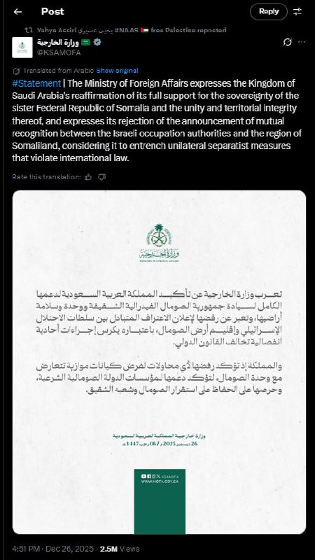 🇶🇦🗽🤝🇮🇱🇸🇴 — UK-based Qatar National Democratic Party, a group that claims to oppose the rule of the Al Thani Dynasty in Qatar, says it supports Israel’s decision to recognize Somaliland and condemning Qatar’s decision to condemn Israel over it Its…