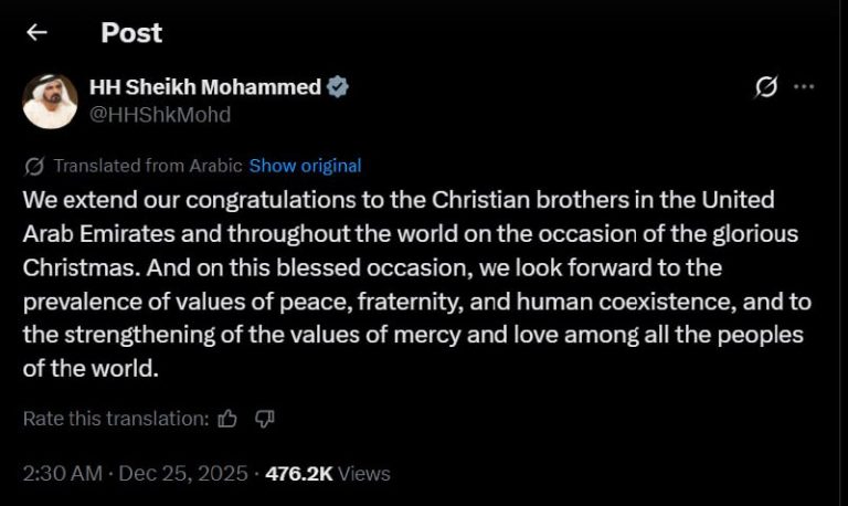 🇦🇪🤝✝️ — His Royal Highness Sheikh Mohammed bin Rashid Al Maktoum wishes all Christians, in UAE and abroad, a Merry Christmas: We extend our congratulations to the Christian brothers in the United Arab Emirates and throughout the world on the…