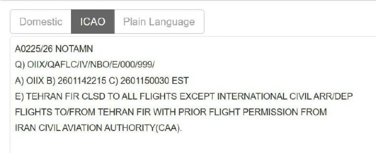 โโ๏ธ๐ฎ๐ท BREAKING: Iran officially issues a NOTAM closing its airspace to all civilian air traffic @Middle_East_Spectator View Source