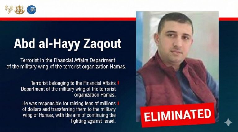 An Israeli airstrike earlier this month that eliminated senior Hamas commander Raed Saad also killed a key financial operative for the terror group, according to the Israel Defense Forces. The operative, Abd al-Hayy Zaqout, was traveling with Saad when the…