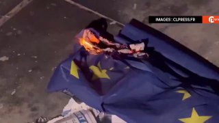 Fransa’da göstericiler Avrupa Birliği bayraklarını yaktı. Demonstrators in France burn European Union flags. View Source