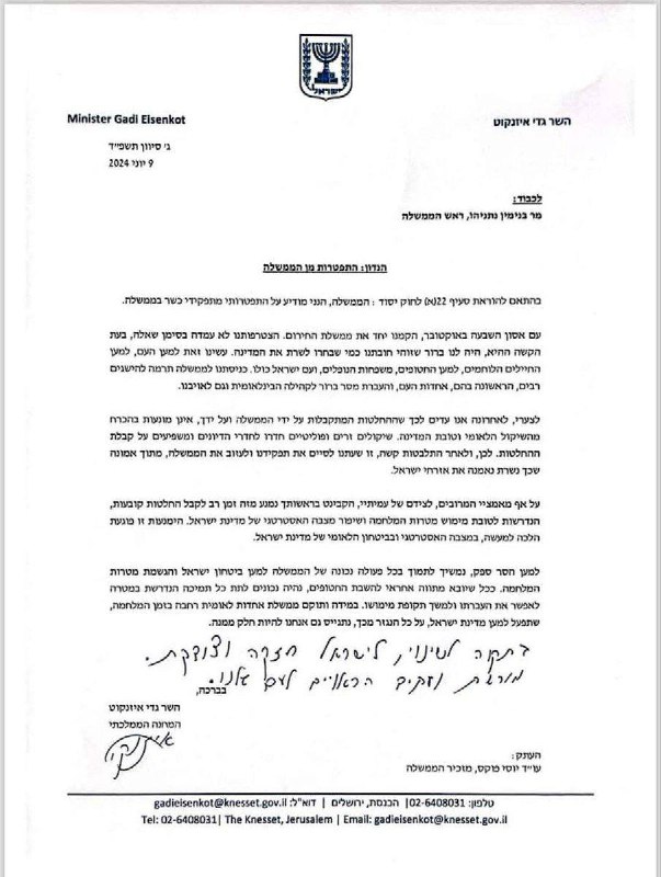🇮🇱 BREAKING: Minister Yehiel Moshe “Hili” Tropper from the State Camp party submits his resignation from the government after the resignation of Gantz and Eisenkot. 🔴 @DDGeopolitics View Source