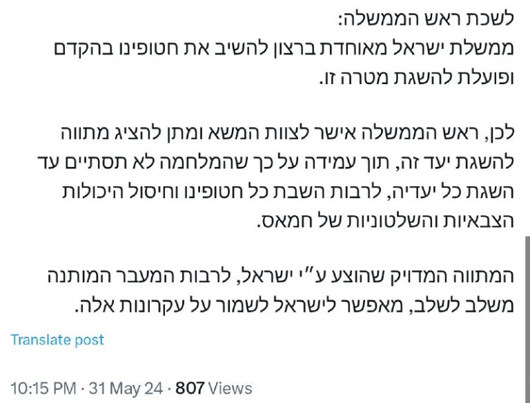 🇮🇱 Netanyahu’s office: The Israeli government wishes to return our prisoners as soon as possible and is working hard to achieve this goal. Therefore, the prime minister allowed the negotiating team to come up with a plan to achieve this…