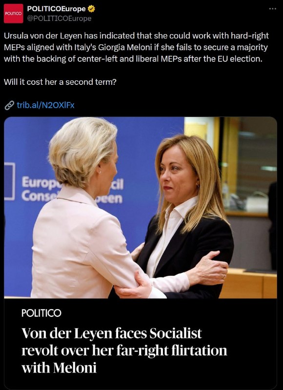 🇪🇺🟨⚡️ President of the European Commission, Ursula von der Leyen is allegedly negotiating an alliance with the European Conservatives and Reformists bloc (ECR). Such an alliance between the EPP and ECR will destroy the current EPP-S&D-Renew alliance as the S&D…