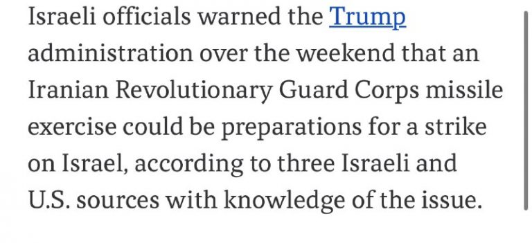 🇮🇱❌🇮🇷 — Axios says that the Israeli government warned the United States this weekend that an ongoing missile exercise in Iran could be a cover for preparations for a surprise attack against Israel. View Source
