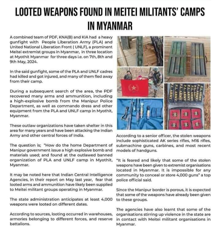 #Myanmar (#Burma) / #India 🇲🇲🇮🇳: Seemingly the conflicts between non-state armed groups in #Manipur also occur to a certain extent in Myanmar. “People’s Defense Forces” , “#Kachin Independence Army” and “#Kuki National Army” raided military camps of “People’s Liberation Army…