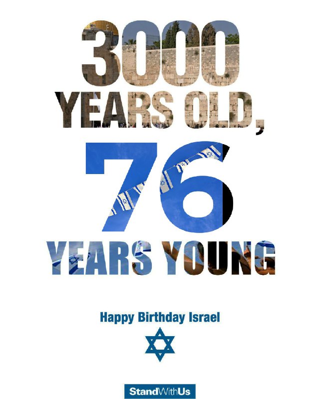 🇮🇱 Yom Ha’atzmaut: 3,000 years old, 76 years young. Happy Birthday, Israel! (📸 StandWithUs) TELEGRAM 🔗 WHATSAPP GROUP 🔗 INSTAGRAM 🔗 STATUS 🔗 View Source