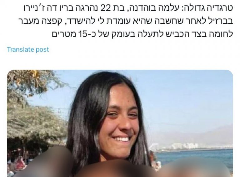 🇮🇱🇧🇷 A 22 years old Israeli “tourist” “jumped” into a 15m deep hole and got instantly killed in Brazil. She entered Brazil 3 months ago. 🚩 @ResistanceTrench View Source
