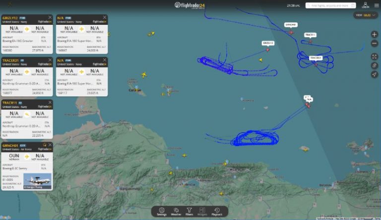 🇺🇸❌🇻🇪 — 2x US Navy Boeing F/A-18E Super Hornet spotted flying in circles less than 50 km away from Caracas coast View Source