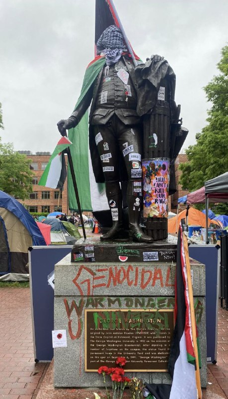 #Exclusive -At george washington University in washington dc, students have defaced a statue of george washington the founder and first president of america. You can also send your exclusive contents to us anonymously by using this bot: @ResistanceTrench_bot 🚩 @ResistanceTrench…