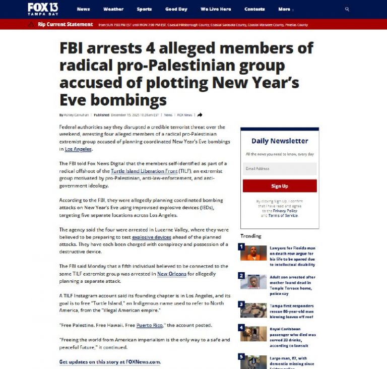 🇺🇸❌🇵🇸🛠 — 5 members of pro-Palestinian group arrested in Los Angeles and New Orleans for plotting bomb attacks on New Year’s Eve, FBI says ➡️ Federal authorities say they disrupted a credible terrorist threat over the weekend, arresting four alleged…