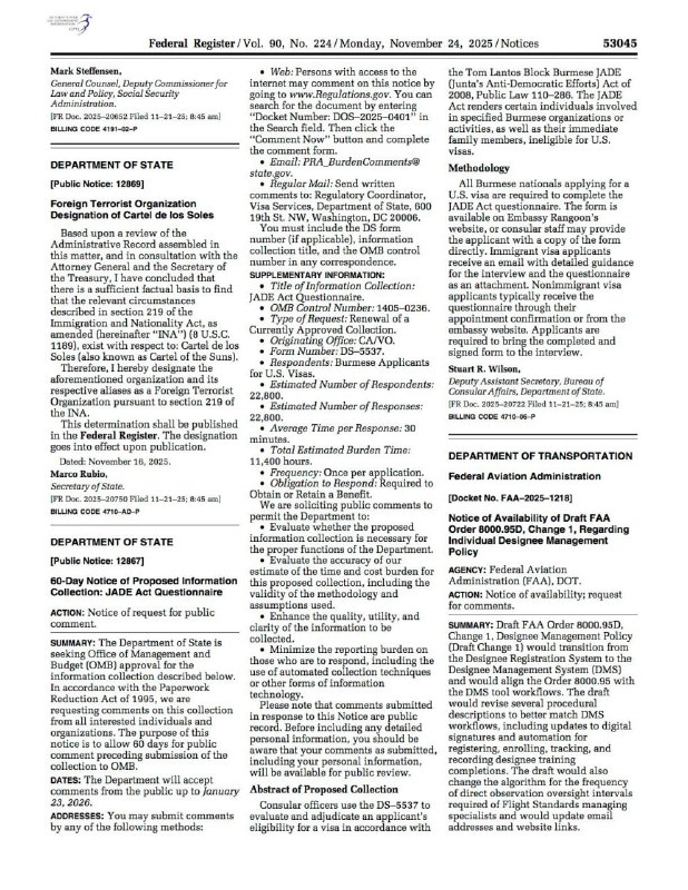 🇺🇸❌🇻🇪❗️ — Midnight of 24 November, 2025: The Cartel of the Suns – headed by Nicolas Maduro Moros, Vladimir Padrino Lopez and Diosdado Cabello – is now officially a Foreign Terrorist Organization by United States Government, as per US State…