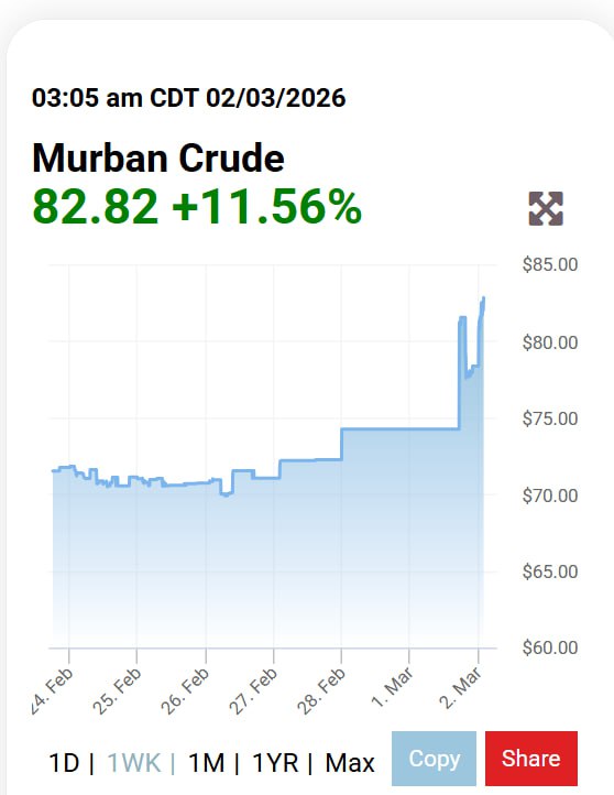 🇦🇪🛢📈 — Murban Crude Oil, the Emirati Standard Oil price, is now at 82.82 USD/barrel View Source