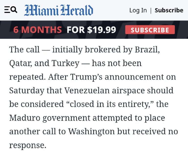 🇺🇸❌🇻🇪❗️ — Miami Herald reports that Maduro asked Trump in the call for an International amnesty for all his crimes against the people of Venezuela and the countries of South America, it was denied. He also asked to maintain control…