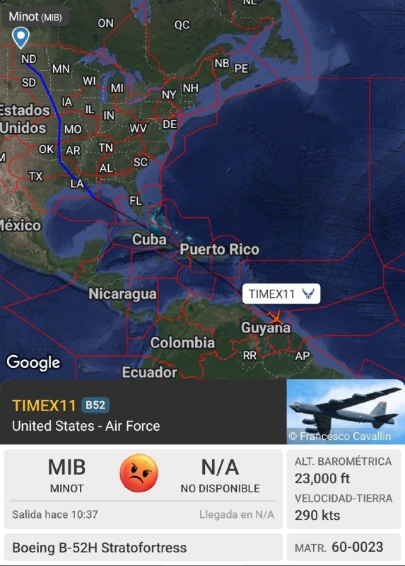🇺🇸❌🇻🇪 — USAF B-52 Strategic Bomber operating at the coasts of Venezuela and Suriname View Source