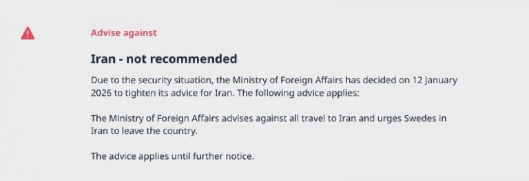 🇸🇪📞🇮🇷❗️ — The Kingdom of Sweden has updated its travel advice for Iran, saying that “In view of the security situation, the Ministry for Foreign Affairs advises against all travel to Iran and urges Swedes in Iran to leave the…
