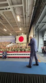 🇺🇸🇯🇵📹 — POTUS Donald Trump is greeted by a cordon of U.S. Navy Rainbow Boys as he and Prime Minister Takaichi arrive on the USS George Washington at Yokosuka Naval Base of JMSDF View Source