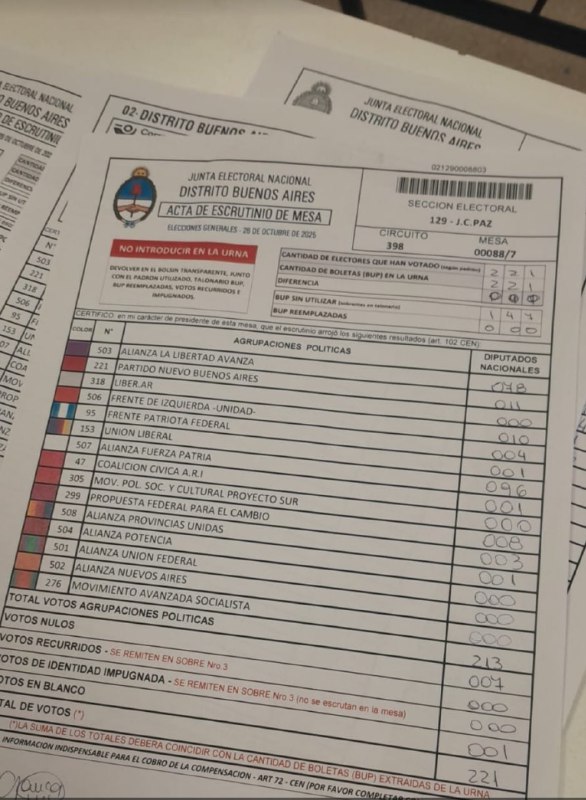 🇦🇷🗳📝 — Official results at table 88 of Jose C Paz, one of poorest cities of Argentina: 🌹 Fuerza Patria (Peronists): 43,44%🐍 La Libertad Avanza (Libertarians) – 35,29%🇦🇷 Somos Buenos Aires (Federalists): 4,98%4️⃣ Left Front: 4,52%🤚 Federal Patriotic Front (Neonazis):…