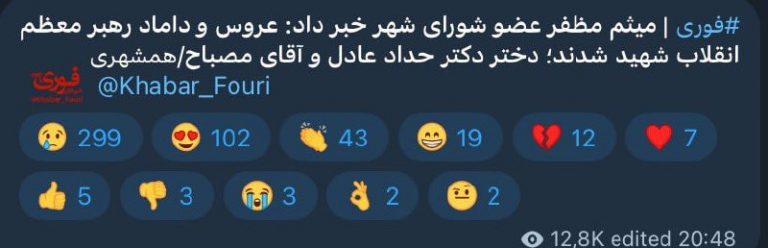 #BREAKING 🇺🇸🇮🇱❌🇮🇷 — Tehran City Council member Meysam Mozaffar says the son-in-law and daughter of Iran’s Supreme Leader were killed by Israeli Raids in Tehran! View Source