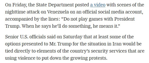 🇺🇸🤝👑❌🇮🇷 — New York Times about Trump-led possible Strikes against the Islamic Republic in Iran: Mr. Trump has not made a final decision, but the officials said he was seriously considering authorizing a strike in response to the Iranian regime’s…