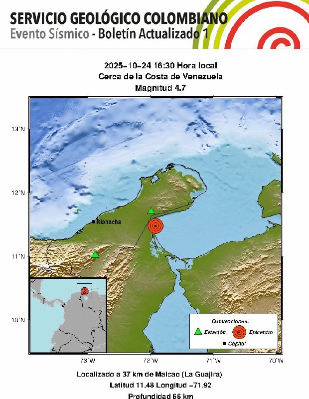 🇻🇪⚠️❗️ — M4.7 Earthquake hits La Guarija, Northwestern Venezuela View Source