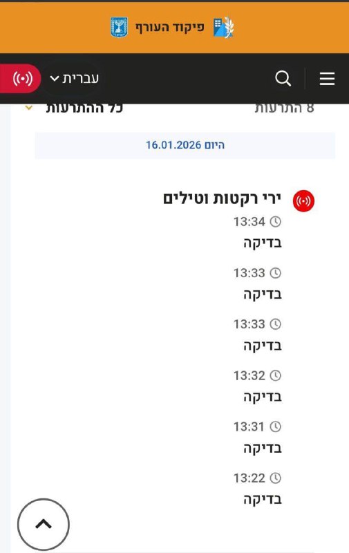 The Home Front Command is currently conducting a test of the alert systems. There is nothing unusual, and there is no need to panic. 🇺🇸 WHATSAPP GROUP 🔗 🇮🇱 TELEGRAM 🔗 🔥 WHATSAPP CHANNEL 🔗 🔗 FOLLOW…