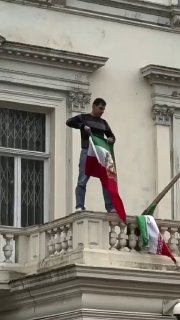 💪🏻💚 Iranian Protester Storms Embassy in London, Rips Down Regime Flag and Hoists Pre-Revolution Lion and Sun Banner A protester scaled Iran’s embassy in London and tore down the Islamic Republic flag, replacing it with the pre-1979 Lion and Sun…