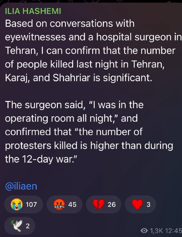 REPORTS OF MANY PROTESTERS SHOT DEAD IN IRAN: Opposition journalist Ilia Hashemi reports that, based on conversations with eyewitnesses and a hospital surgeon in Tehran, the death toll from last night’s unrest in Tehran, Karaj, and Shahriar appears to be…