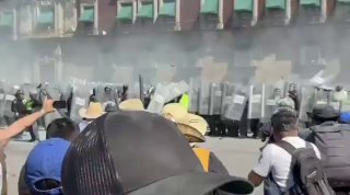 🇲🇽🔥📹 — Video shows that there are no more barriers left to protect the National Palace, the Headquarters government of Mexico. Now, all of them have fallen. Only the security device remains, attempting to defend the Palace with tear gas.…