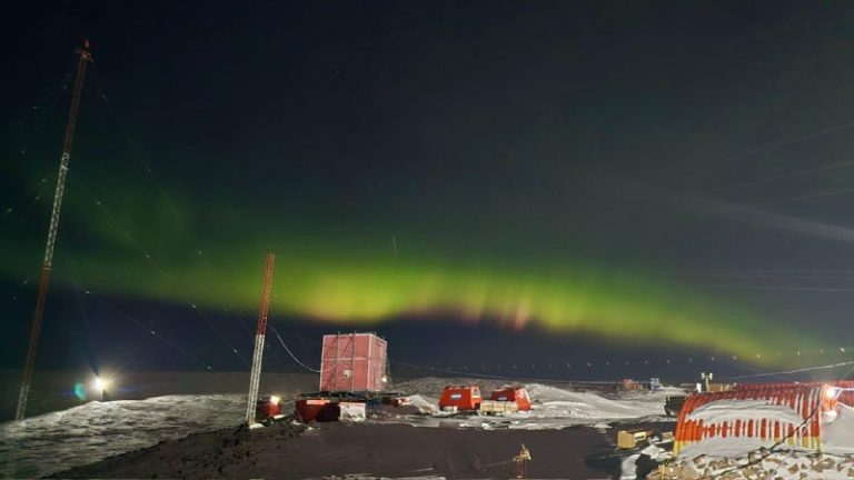 🇦🇶 🇦🇷 🌌 The Aurora Australis illuminate the Argentine Antarctic Belgrano Base due to a geomagnetic storm caused by high-speed solar winds. View Source