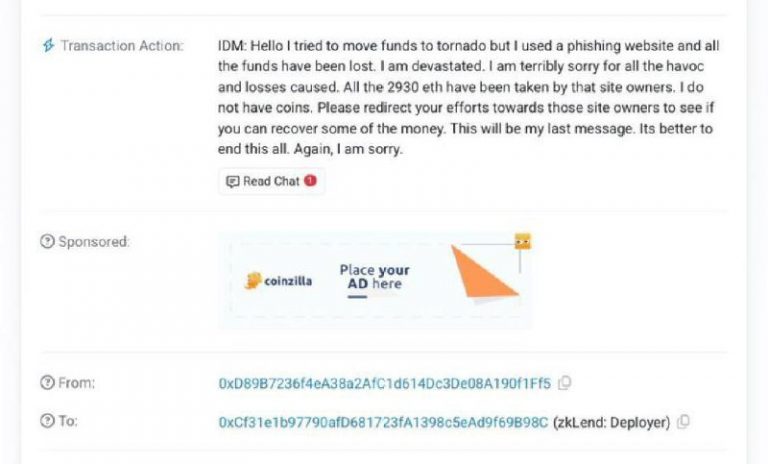 ZKLend hacker gets phished for 2,930 ETH after trying to use a fake version of Tornado Cash – 𝕏/@officer_cia View Source