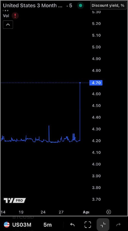 🇺🇸💸📈 — US 3 month treasury yield went from 4.20% to 4.7% as the year of 2025 AD enters on April month It happens very likely due to traders & market anticipation of Trump’s reciprocal tariffs announced for tomorrow 2…