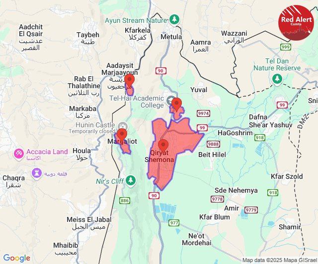 🇮🇱🔥❗️ — Red Alert for Northern Region of Israel Rocket fire from Southern Lebanon View Source