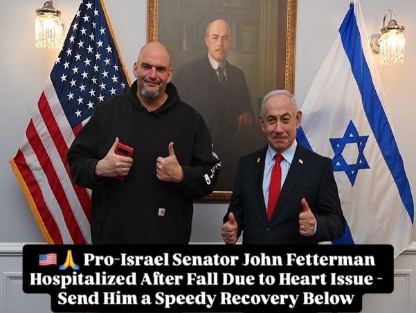 🇺🇸🙏 Pro-Israel Senator John Fetterman Hospitalized After Fall Pennsylvania Sen. John Fetterman, one of Israel’s strongest and most consistent allies in the U.S. Senate, was hospitalized this morning after a fall near his home in Braddock, PA. His office says…