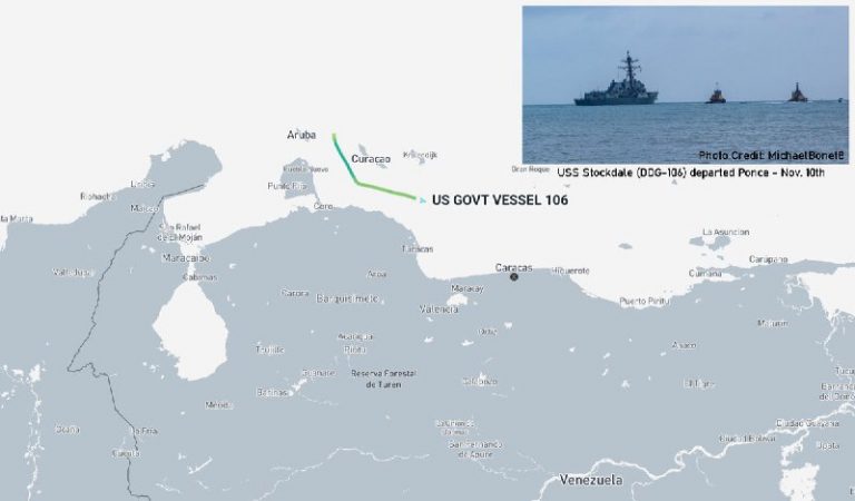 🇺🇸🪖🗺 — The US Navy’s Arleigh Burke Flight IIA-class destroyer, USS Stockdale (DDG-106), is currently off the coast of Venezuela. 📝 She transited between Aruba & Curaçao, and is currently ~30 Miles (48 Km) off the coast of Venezuela. 🔗…