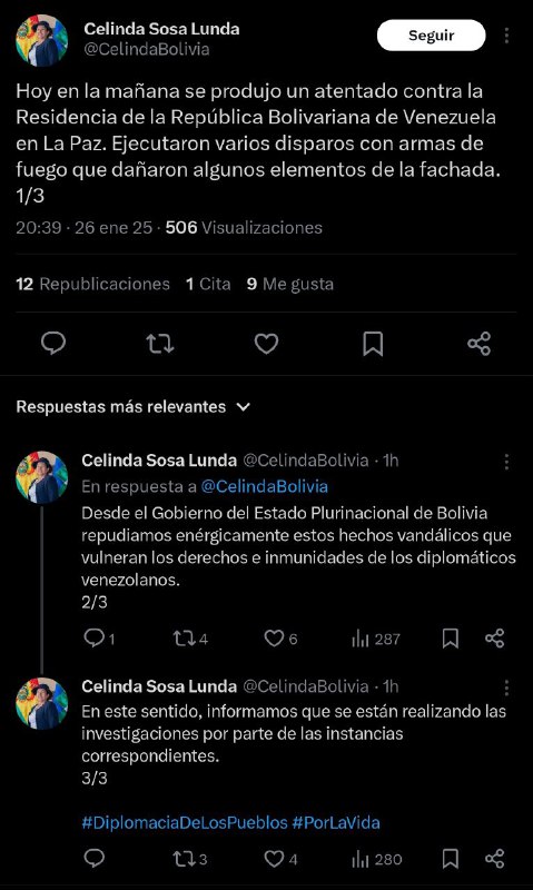 🇧🇴🇻🇪 Bolivian government denounces “shooting attack” against the residence of the Venezuelan embassy in La Paz https://x.com/CelindaBolivia/status/1883676237417345267?t=zqsjhdqBH5ndlS1oYmYvIw&s=19 View Source