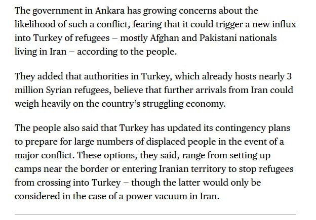 🇹🇷❌🇮🇷❗️ — Bloomberg reports that Turkey is planning to establish a buffer zone inside Iranian territory to stop refugees from crossing into Turkey in case of Vacuum of power in Iran View Source