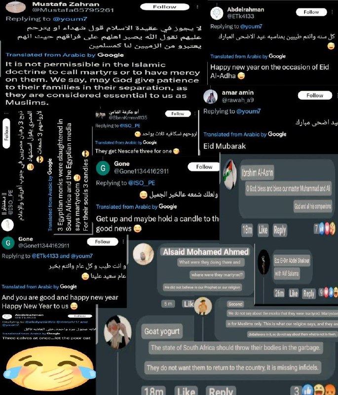 The pattern exists across social media and is done with normal events completely unrelated to oppression of Sunnis. Here were the social media replies to the murder of Coptic monks in South Africa. There were zero Muslims involved yet they…
